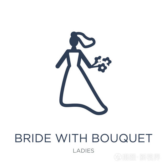 新娘与花束图标。时尚的平面矢量新娘与花束图标在白色背景上从女士收藏